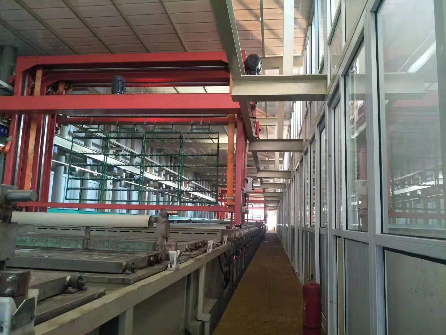 电镀处理过程中所用的设备主要有各类固定槽、滚镀槽、挂具、吊篮等。镀后处理是对零件进行抛光、出光、钝化、着色、干燥、封闭、去氢等工作,龙门式挂镀生产线,根据需要选用其中一种或数种工序使零件符合质量要求。镀后处理常用设备主要有磨、抛光机,各类固定槽。