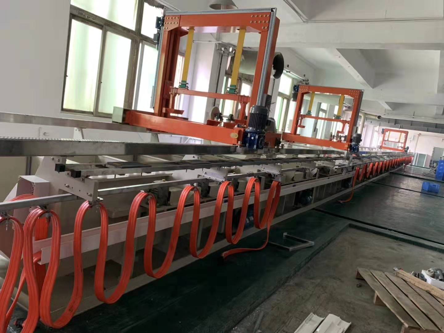 电镀处理过程中所用的设备主要有各类固定槽、滚镀槽、挂具、吊篮等。镀后处理是对零件进行抛光、出光、钝化、着色、干燥、封闭、去氢等工作,龙门式挂镀生产线,根据需要选用其中一种或数种工序使零件符合质量要求。镀后处理常用设备主要有磨、抛光机,各类固定槽。